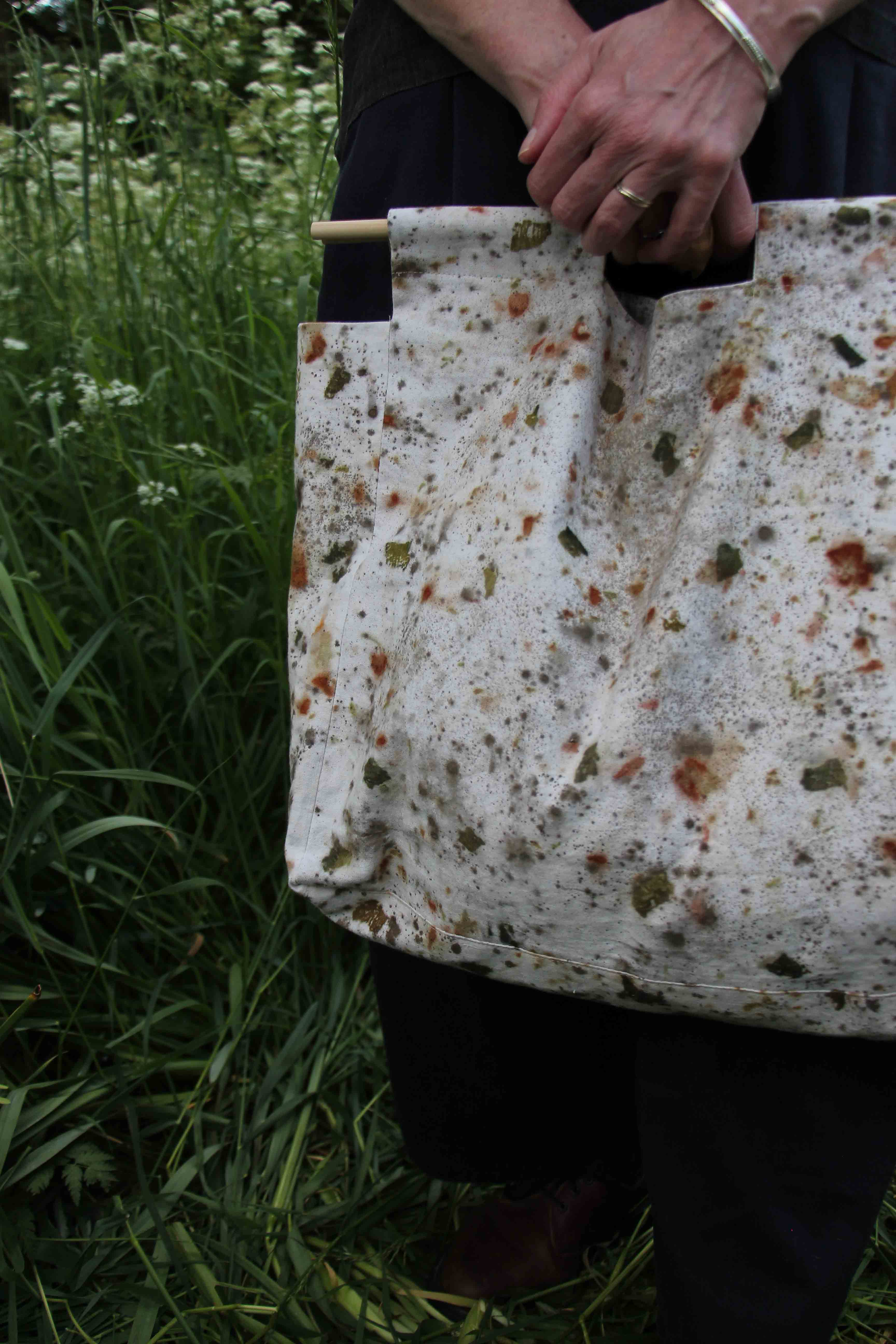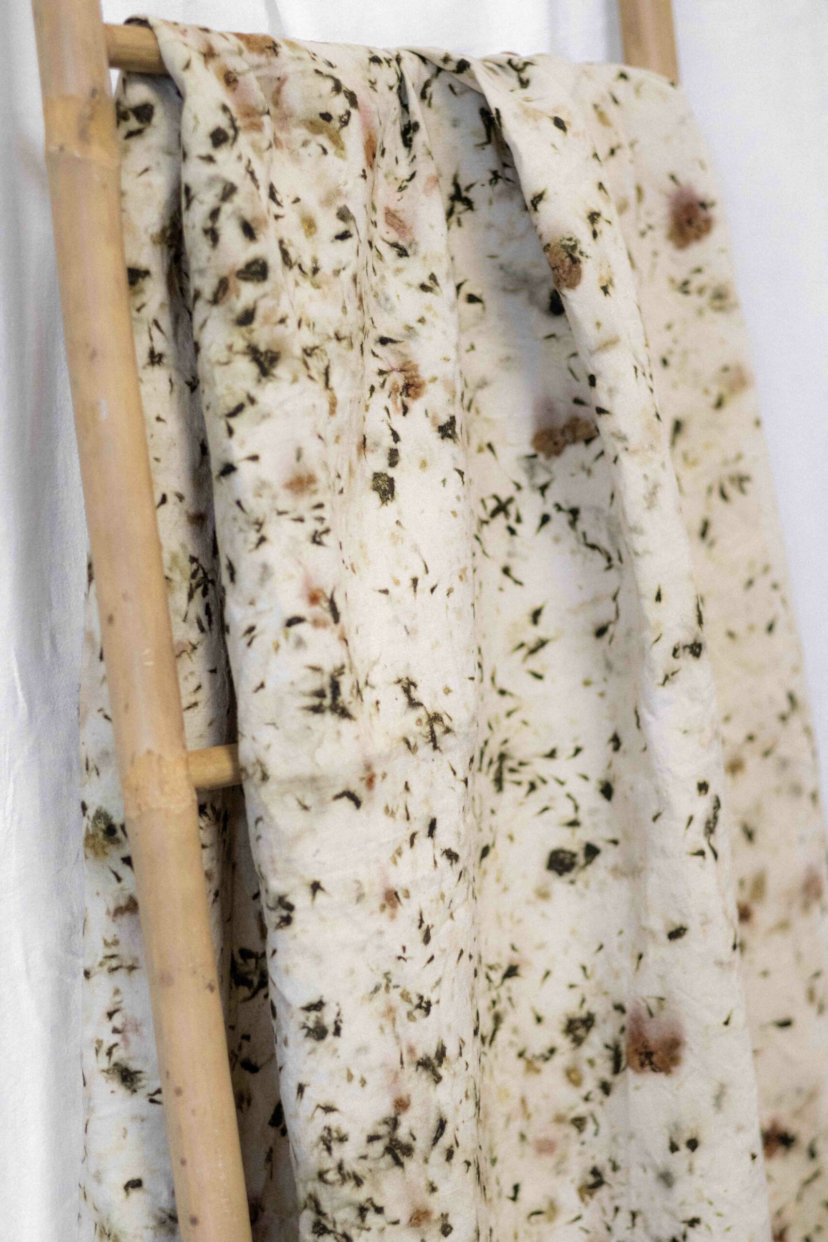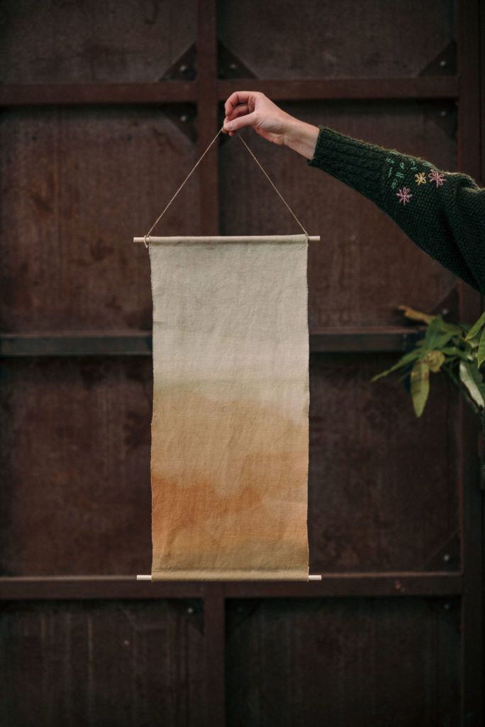 Laura s’inscrit dans une démarche d’upcycling où elle utilise notamment des textiles de seconde main pour réaliser ses boucles d’oreilles (80%). J’ai donc proposé à Laura de valoriser mes chutes en teinture végétale afin de co-créer des boucles d’oreilles uniques. Les perles en bois ont été, elles aussi, teintes de manière naturelle.