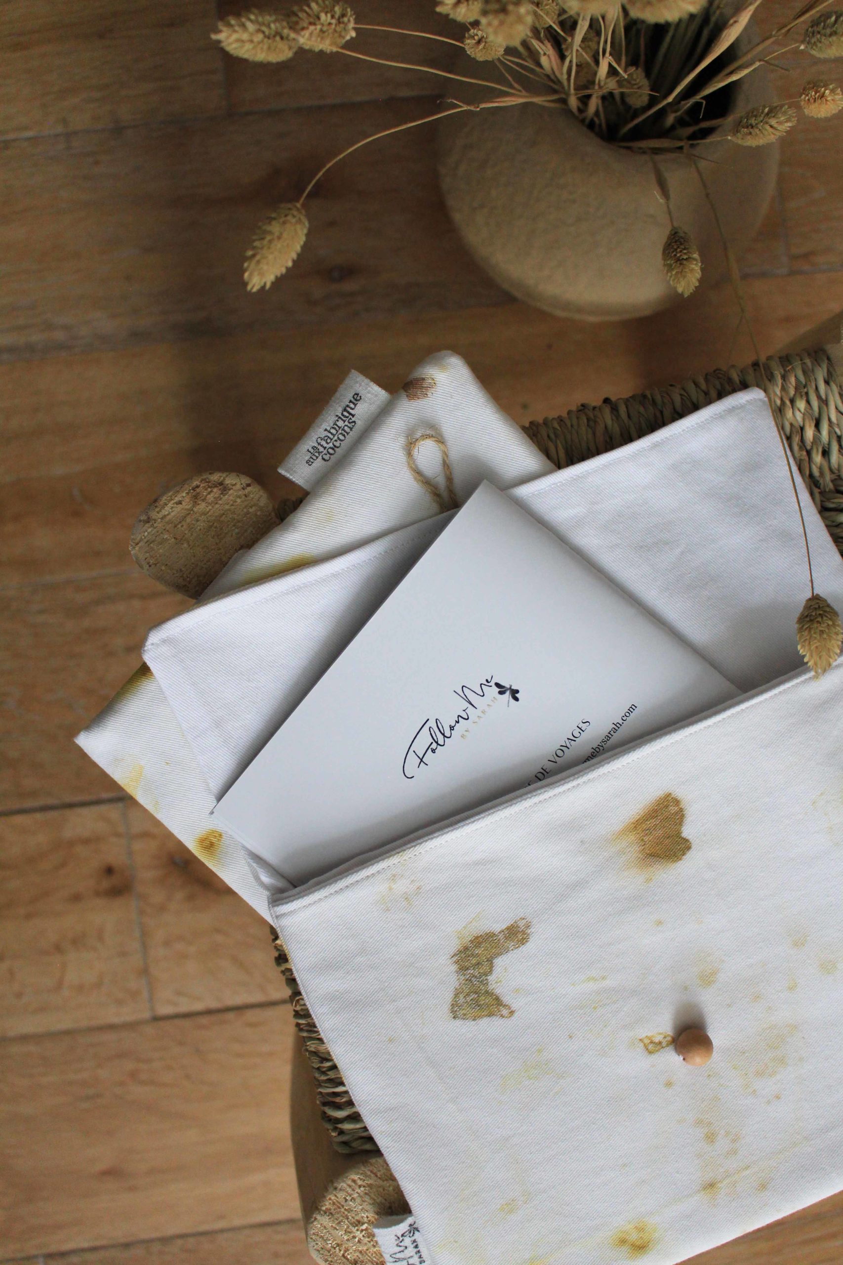 A la recherche d’artisans locaux pour la création de ses carnets de voyage, Sarah a été séduite par la teinture naturelle et le recyclage de cotons anciens. Elle m’a immédiatement proposé de co-créer chaque pièce afin que ses clients puissent bénéficier d’une pochette artisanale unique. Une belle façon de valoriser le patrimoine local et favoriser l’économie circulaire! Les valeurs et les aspirations de Sarah m’ont conforté dans l’idée d’accompagner ces personnes dans ce beau voyage.