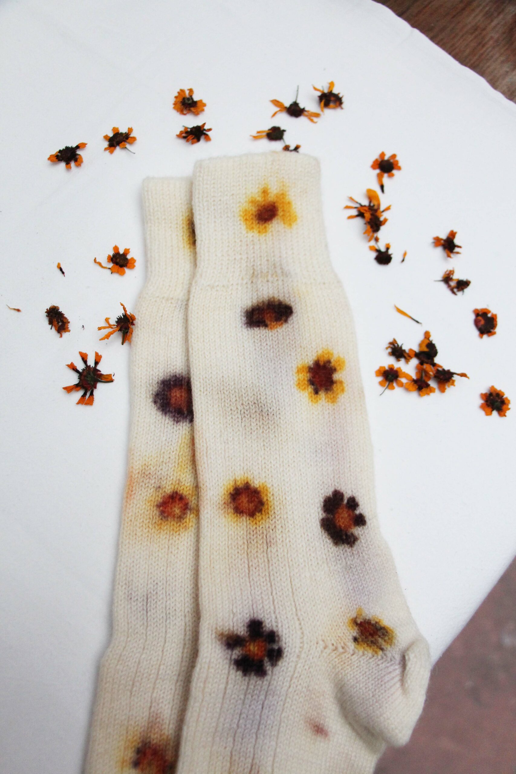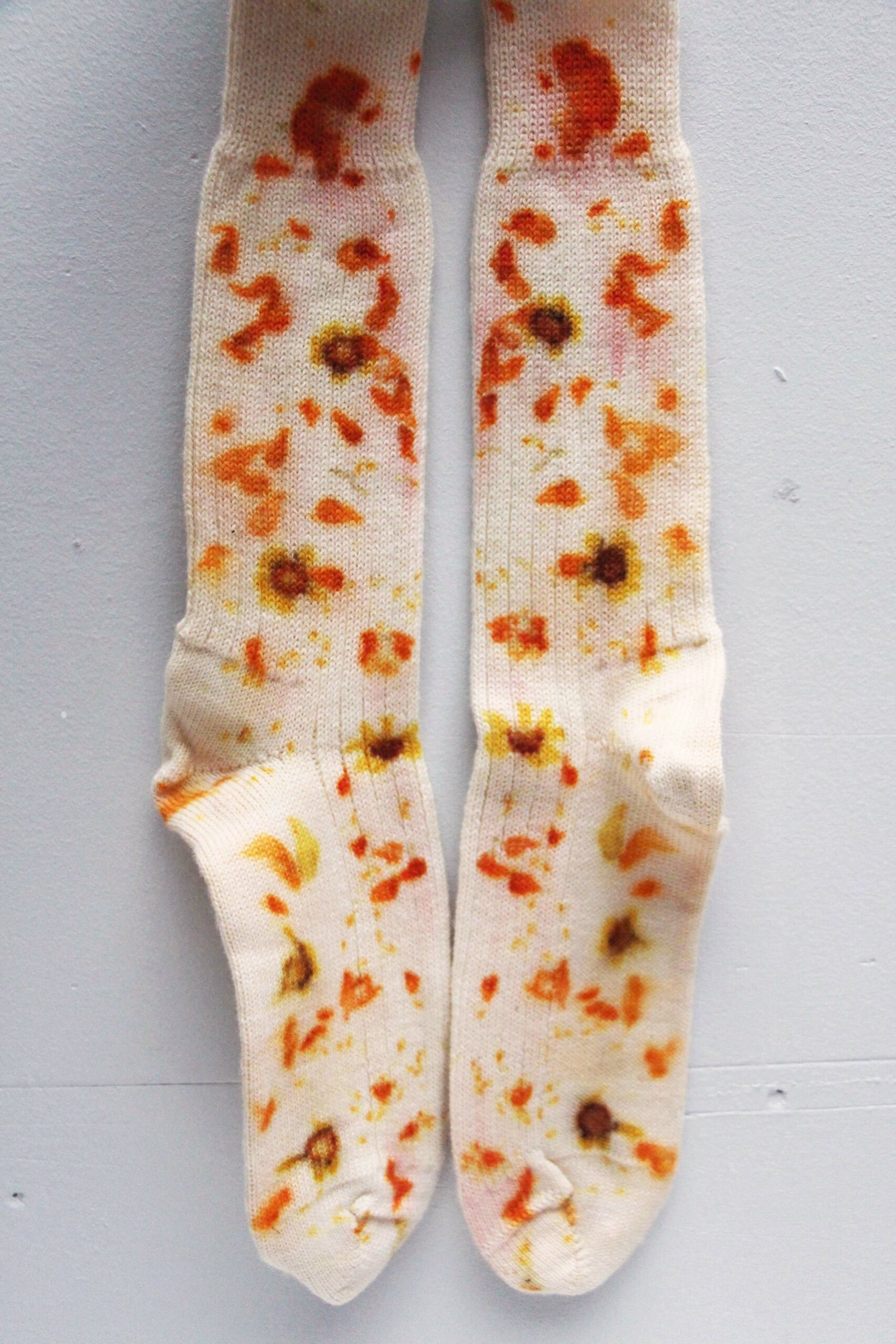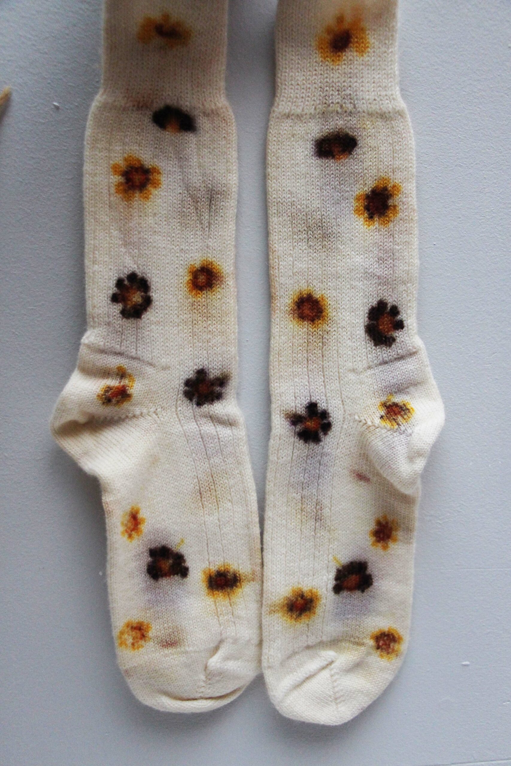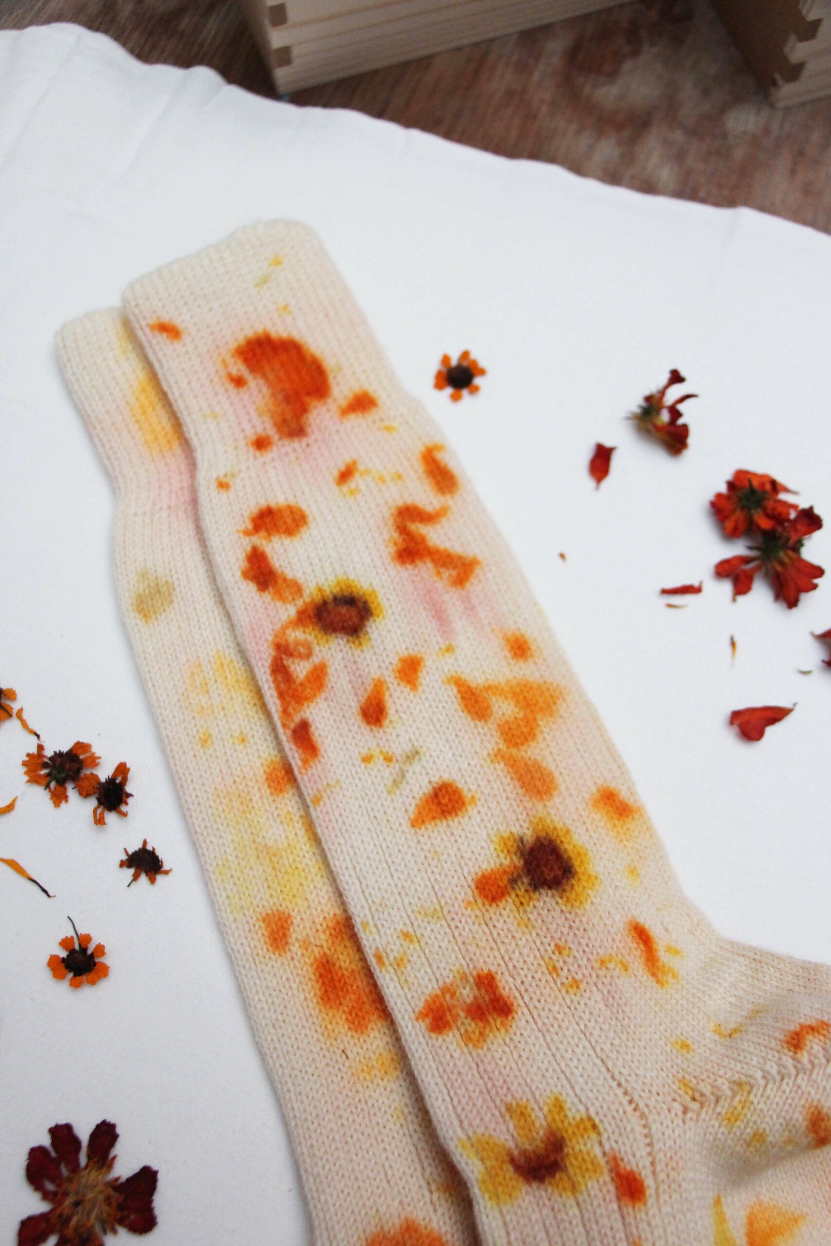 Chaussettes côtelées en laine et impressions végétales _Saison 2025