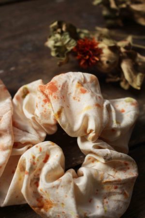 Ces chouchous ont été confectionnés à partir de soie de seconde main.