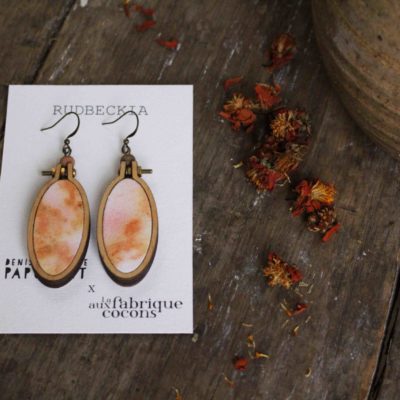 Végétaux utilisés pour les impressions : racines de garance, oeillets d’Inde, pelures d’oignons rouges & jaunes, réséda.